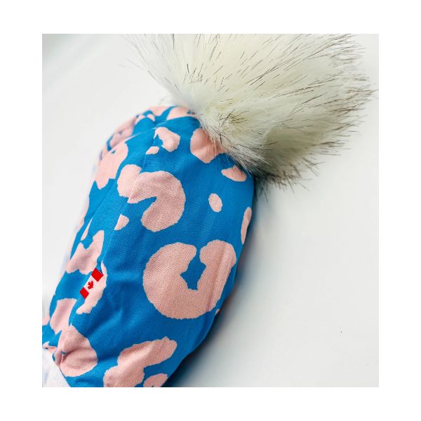 • Whimsical Blue Leopard print with adorable pom pom detail.