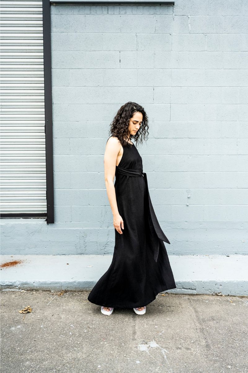 Ideal for brunches, beach outings, or casual strolls, this dress transitions seamlessly from day to night. The open back adds a touch of sophistication, while the relaxed linen fabric ensures all-day ease. This dress is ethically designed and manufactured in Montreal, Canada, supporting local Craftsmanship, leading to fostering the nation’s economy.