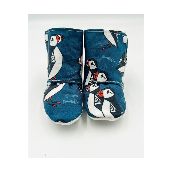Blue Puffin Baby Booties – Whimsical Comfort for Little Feet
