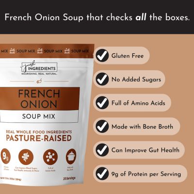 | Ingredients | Organic Chicken Bone Broth Organic Minced Onion Organic Onion Powder Sea Salt Organic Garlic Powder Organic Black Pepper |