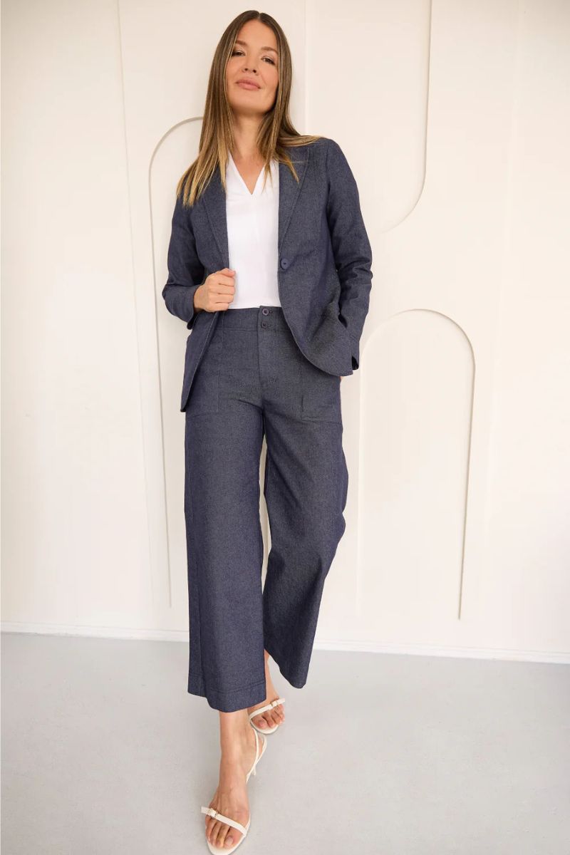 Long Blazer & Stretch Denim Crop Wide-Leg Pants Set | Brenda Beddome