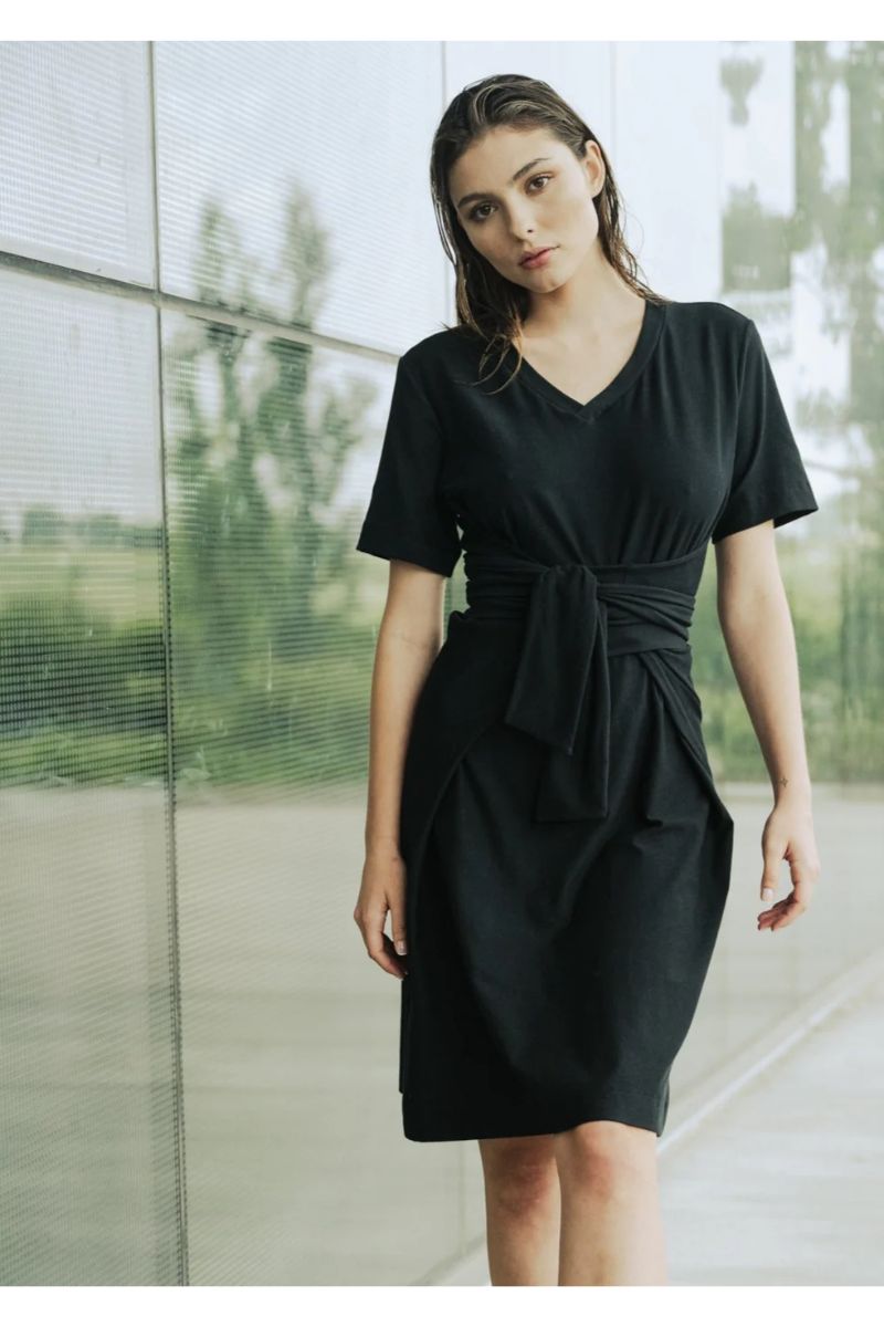 Wrap yourself in sustainable style with the Manilla Belted Dress! Designed for versatility, this V-neck dress features a flattering crossed waist detail and 3-way wrap styling.