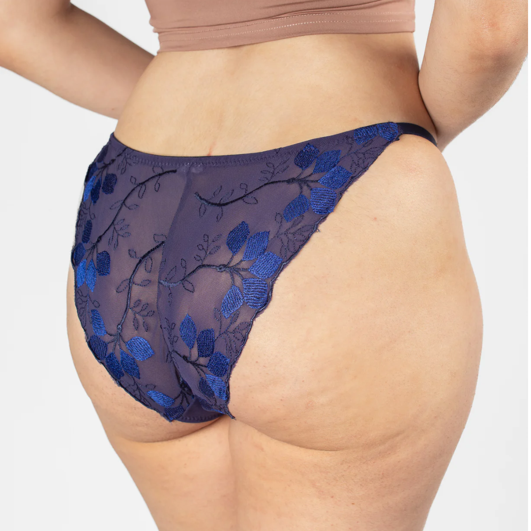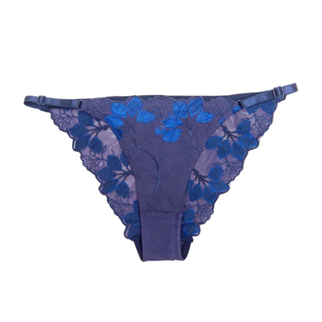 Navy Blue Floral Lace Bikini – Adjustable & Stylish Swimwear