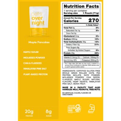 | Includes | Maple Sugar Molasses Powder Chia & Flaxseed Himalayan Pink Salt Plant-Based Protein 20g protein 8g sugar |