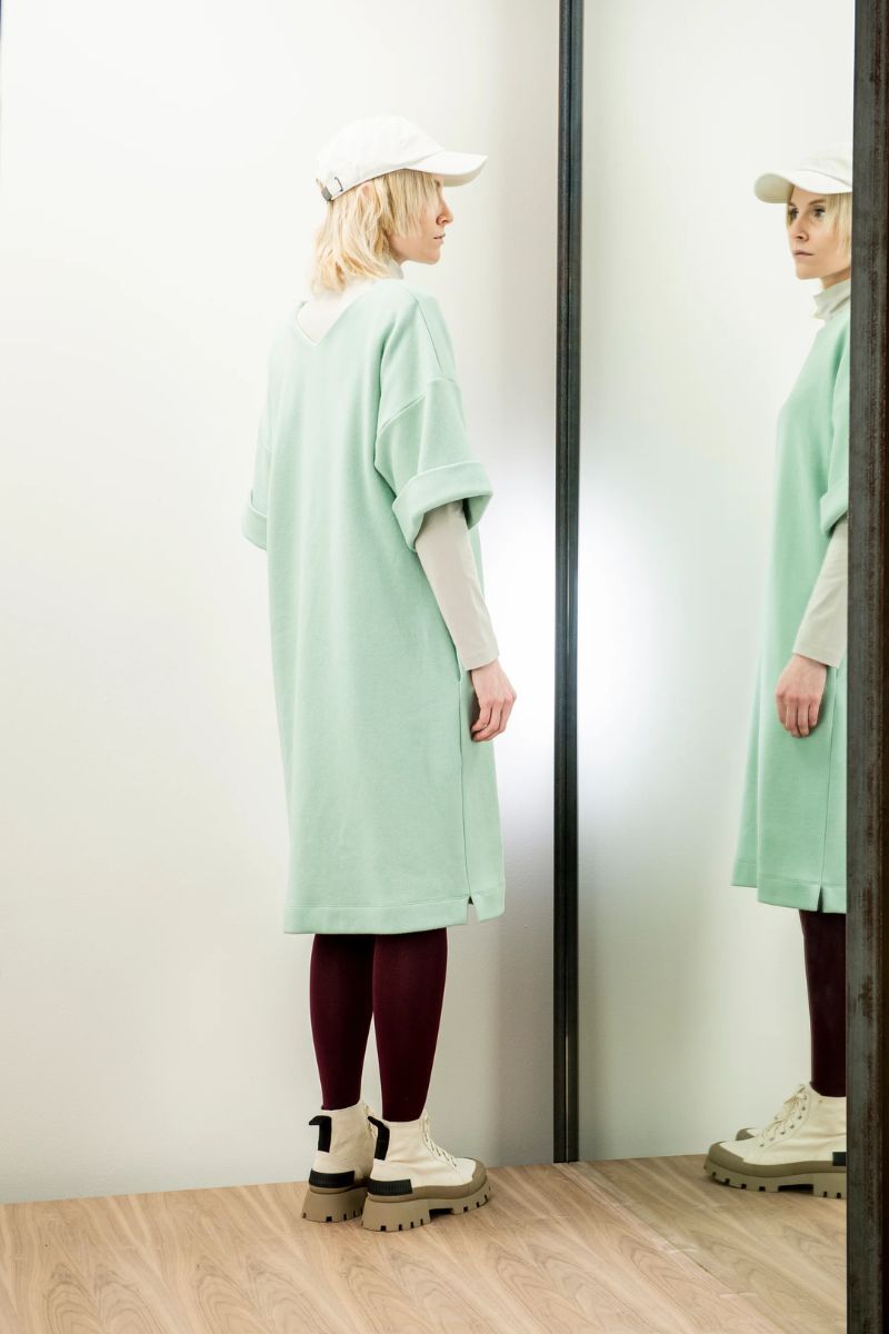 Pair this lightweight knit dress with sneakers for brunch or layer with boots and a jacket for cooler days. Its Sage-coloured hue complements all skin tones, making it a year-round wardrobe staple.
