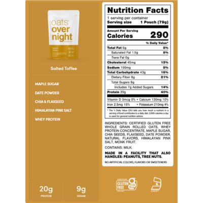 Certified gluten-free and vegan-friendly, Salted Toffee Oats Oatmeal caters to diverse dietary needs. Its unique flavor profile elevates traditional oatmeal, making it a pantry staple for health-conscious foodies.