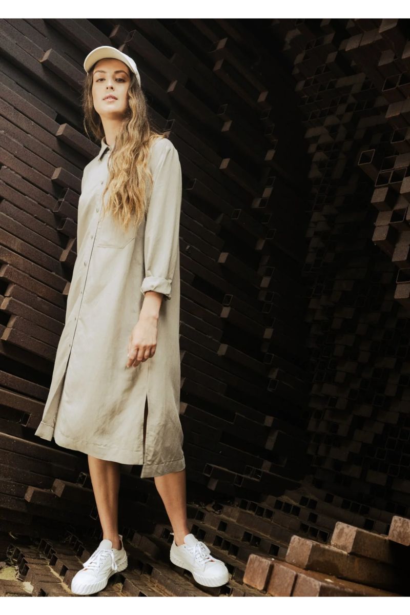 Discover the Stone Oran Shirt Dress—a blend of relaxed style and eco-conscious design.