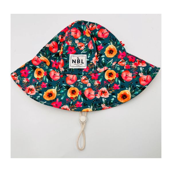 Teal Floral Baby Sun Hat – Ultimate UV Protection with Playful Style